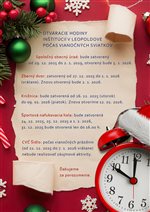Otváracie hodiny inštitúcii v Leopoldove počas vianočných sviatkov
