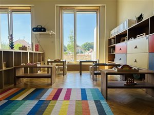 Prevádzka je segregovaná do dvoch úrovní. Na prvom podlaží sú priestory pre deti (vstupný priestor, šatňa, umývareň s toaletami, jedáleň, kuchynka, herňa pre deti, spálňa pre deti, prekrytá terasa) a v podkrovných priestoroch sú situované priestory pre personál.